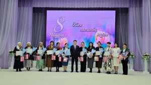 – Сіздерді көктемнің шуақты мерекесі – 8 наурыз Халықаралық әйелдер күнімен шын жүректен құттықтаймын! Әйел – ұлттың айнасы. Себебі жер бетіндегі жақсылық, ізгілік, қайырымдылық атаулының бәрі сіздерден, әйел-ананың ақ сүті мен ақ ниетінен тарайды. Бүгінде қыз-келіншектеріміз отбасы жауапкершілігімен қатар түрлі салада табысты еңбек етіп келеді. Әсіресе білім беру, денсаулық сақтау, әлеуметтік қолдау, мәдениет салаларындағы арулардың еңбегі айрықша, – деді аудан басшысы.