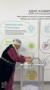 Референдум учаскесі сағат 07:00-ден бастап ашылды. Комиссия мүшелері сайлаушыларды тіркеу, бюллетеньдерді беру және дауыс беру тәртібін сақтау жұмыстарын жауапкершілікпен атқаруда. Барлық рәсімдер ашықтық пен заңдылық қағидаларына сәйкес жүргізілуде. Бүгінгі референдум барысы жақсы өтіп жатыр. Бұл науқанның ашық әрі ұйымдасқан түрде өтуін айғақтауда. Аудан тұрғындарының жаппай келуі азаматтардың саяси белсенді болуының көрінісі. Таң сәріден бастап келушілер легі азаяр емес. Отбасы мүшелерінің бірлесіп келу жағдайлары жиі кездесуде.” — деді сайлау комиссиясының төрағасы С.Садықов