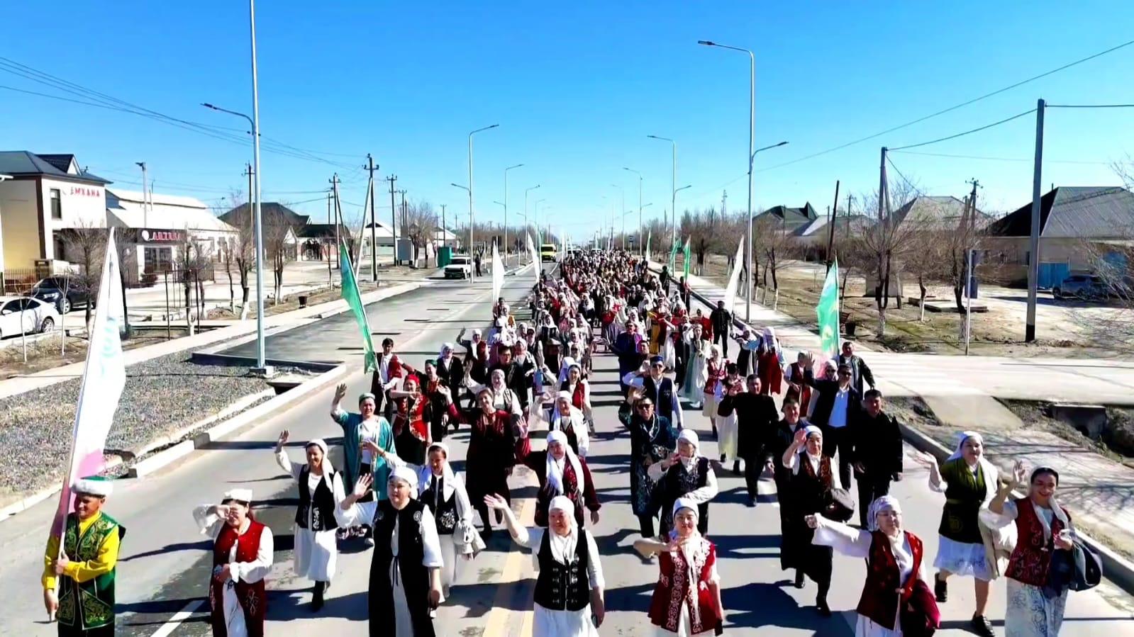 Шара барысында Жаңақорған кентінің орталық көшелерімен өнерпаздар, спортшылар, жастар және мекеме қызметкерлері ұлттық киімдермен шеру жасап өтті. Қатысушылар қазақтың дәстүрлі киім үлгілерін көпшілікке таныстырып, тұрғындарға мерекелік көңіл-күй сыйлады.