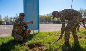 Іс-шара барысында әскери қызметшілер қоршаған ортаны қорғау және табиғатты аялау бағытындағы игі бастаманы қолдап, қызметтік аумақтарда ағаш көшеттерін отырғызды.